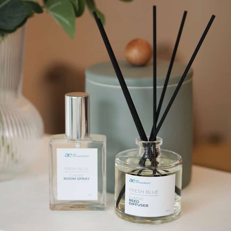This reed stick diffuser is scented with ones of our top-selling aromas, Fresh Blue, a premium fragrance that begins with mouthwatering mandarin, fresh watery ozone and green cardamom notes, supported by black pepper and musk.