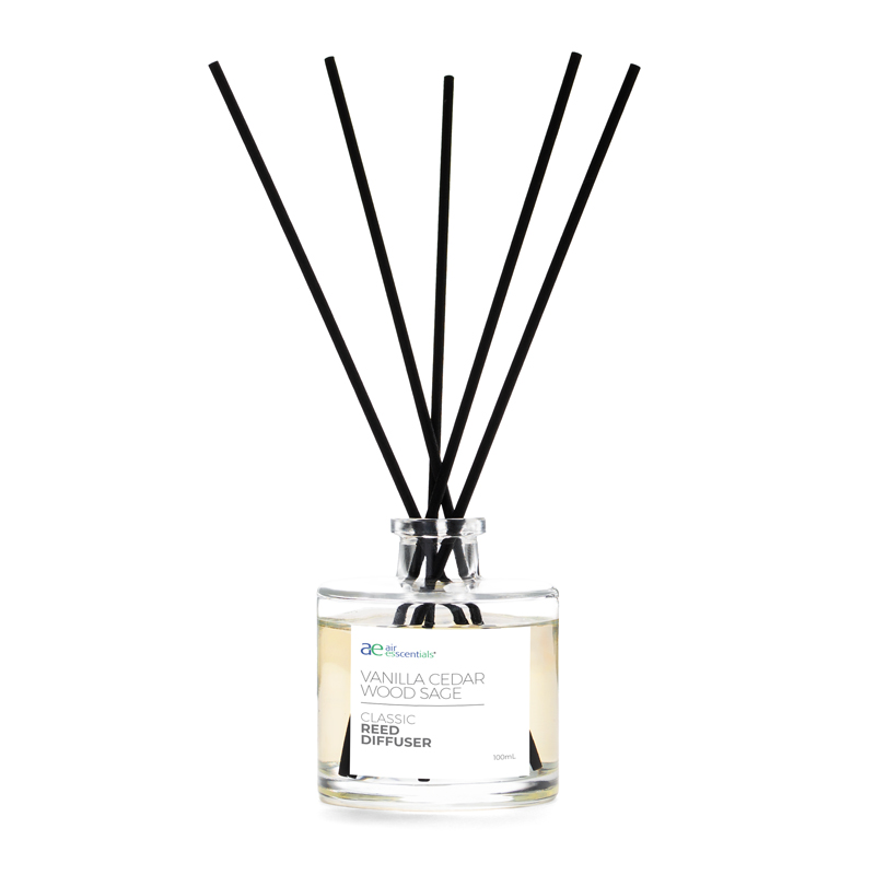 This reed stick diffuser is scented with Vanilla Cedarwood Sage, a fresh-warm herbaceous aroma of sage which is fortified by earthy cedar wood and balanced with the powdery warmth of vanilla.